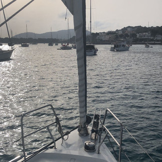 Deb’s, Phillip and I Left Sant Carles Marina mainland Spain at 16:30 on the 18 June heading for Santa Ponsa, a bay on the south coast of Mallorca. The passage was a game of two half’s the first fantastic sailing the second bashing into metre waves with 20 knots of wind on the nose. When we went to furl away the genoa the furling line broke. Repair required. Now sat at anchor with beautiful weather and scenery waiting for the Ross, our last crew member for the big passage.